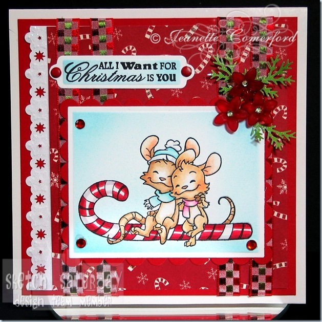 Such an adorable card Jeanette! Those WOJ mice are the cutest! Fab Christmas card. Hugs, Simonne x