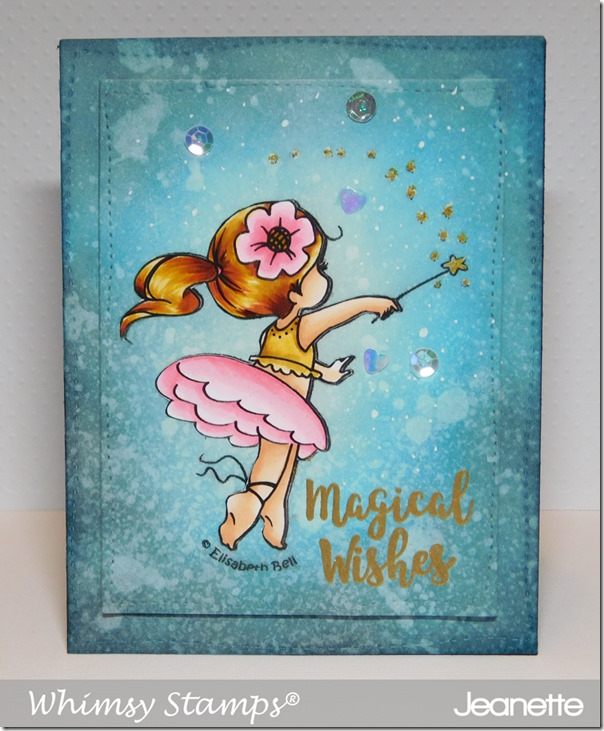 Happy day! Hope you are having a great day! I have a new card to share with you featuring one of the new May release images from Whimsy! I love how this card turned out. I wanted to create a magical background for this very sweet, very magical image. In my video I will take you through how I created the background as well as how I colored the image using Copic Markers.